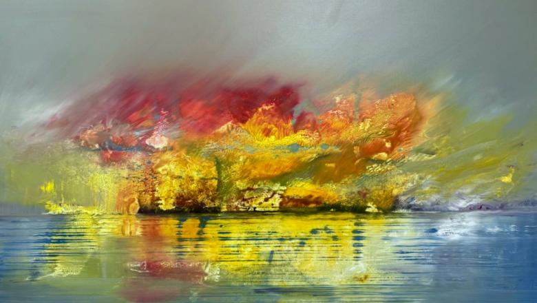 Es duftet nach Farbe und freudiger Arbeit. Und der lichtdurchflutete Raum fordert geradezu zur Kreativität auf. Hier entstehen und lagern Christian v. Grumbkows Bilder. Hier wird auch in Form von Kursen oder WE-Seminaren das künstlerische Rüstzeug für malende Laien vermittelt. Aber auch studierte Maler lassen sich von dem ehemaligen Folkwangschul-Dozenten coachen.